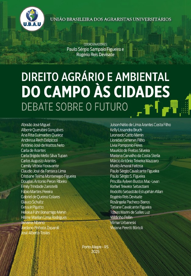 A União Brasileira dos Agraristas Universitários, por sua Comissão Nacional de Assuntos Fundiários (CNAF/UBAU), lançou a obra intitulada “Direito Agrário e Ambiental, do Campo às Cidades: Debate sobre o Futuro”, coordenada por Paulo Sérgio Sampaio Figueira e Rogério Reis Devisate. O livro, que reúne 27 artigos de destacados juristas, foi prefaciado pelo Diretor de Assuntos Agrários do Instituto de Registro Imobiliário do Brasil (IRIB), Izaias Gomes Ferro Júnior.