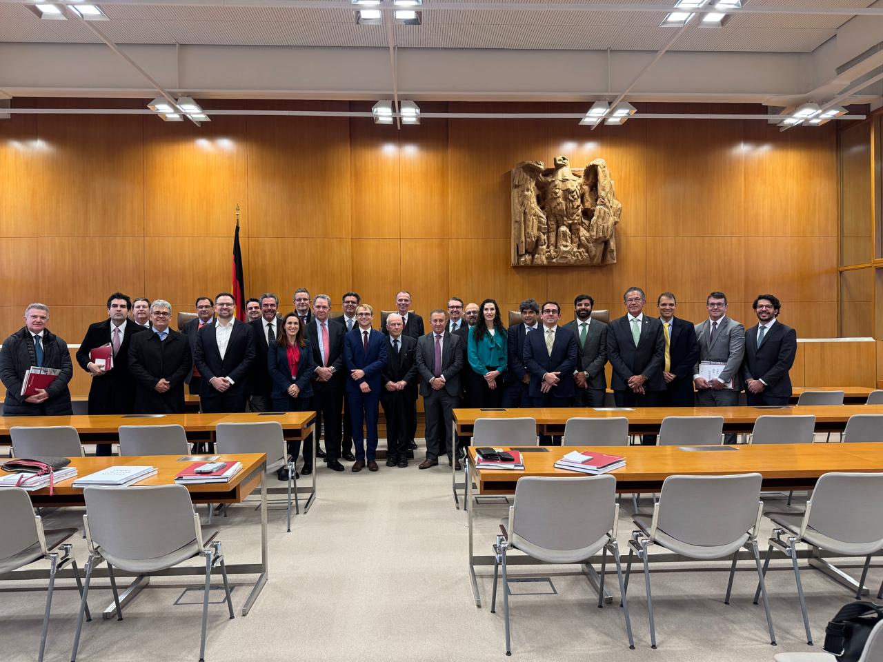 No segundo dia, a comitiva visitou o Oberlandesgericht de Karlsruhe (OLG) e o Bundesverfassungsgericht (BVG), equivalentes a um Tribunal de Justiça estadual e ao Supremo Tribunal Federal. Os participantes conheceram o funcionamento da Justiça alemã, marcada pela busca pela conciliação e pela análise detalhada dos casos concretos. Em mesa-redonda com a juíza constitucional Rhona Fezer e o Juiz Constitucional Holger Wöckel, foi possível verificar a diferença de competências entre as Supremas Cortes. Na Alemanha, apenas questões constitucionais relativas a direitos fundamentais e à organização do Estado chegam à Corte, composta por 16 juízes constitucionais, o que reduz significativamente o número de processos. Foi destacada, ainda, a consagração da proteção ao Direito de Propriedade como um dos direitos fundamentais previstos na Lei Fundamental Alemã.