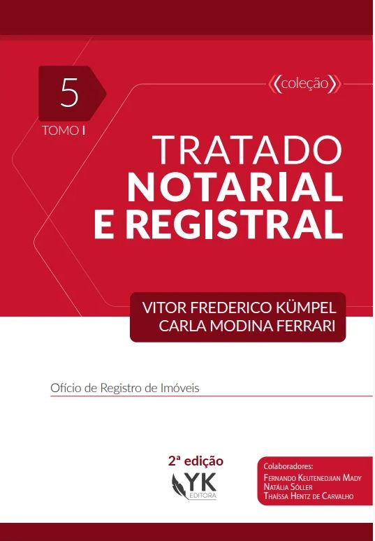 A YK Editora publicou a segunda edição da obra “Tratado Notarial e Registral – Vol. 5 – Ofício de Registro de Imóveis”, de autoria de Vitor Frederico Kümpel e Carla Modina Ferrari. Composta de dois tomos, a obra integra a “Coleção Tratado Notarial e Registral”, ao lado de outras obras divididas de acordo com as especialidades das Serventias Extrajudiciais e já está disponível para pré-venda na loja virtual da YK Editora.